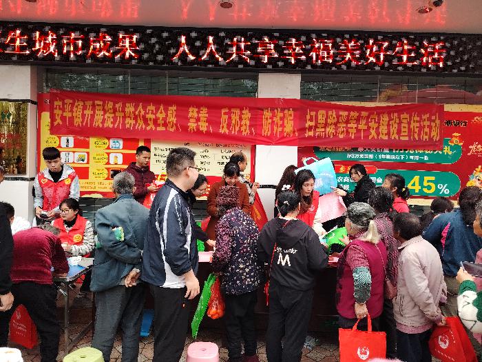 为进一步加强平安建设工作宣传力度,提高群众对平安建设工作的知晓率和参与度,3月19日上午,安平镇利用圩日赶集人多时机,组织镇综治办、禁毒办、司法所、妇联等多个部门在街区开展提升群众安全感、禁毒、反邪教、防诈骗、扫黑除恶等集中宣传活动。