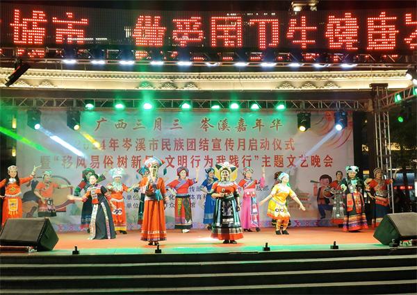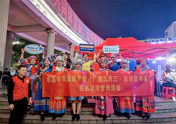 三月三,上巳节,风微起,春正长。为铸牢中华民族共同体意识,培养全市各族群众自觉守法的意识、遇事找法的习惯、解决问题用法的能力,4月10日晚,岑溪市司法局到小广场开展“广西三月三•法治在岑溪”民族法治宣传活动。