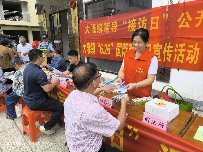 为进一步畅通群众信访渠道,零距离倾听群众呼声,帮助群众解决疑难问题,增强群众安全意识,提高全民拒毒防邪能力。6月26日,我镇在农贸市场开展领导“接访日”公开大接访、反邪教、“6.26”国际禁毒日等宣传活动。镇党委、政府主要领导参加接访。