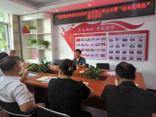 7月2日-7月4日,岑溪市司法局联合岑溪市工商联、国家税务总局岑溪市税务局组织多家律师事务所律师到当地商会,开展“万所联万会”活动,了解商会、企业诉求,积极主动做好法律咨询、普法宣传、权益维护、纠纷调解等工作,当好优化法治化营商环境的“划桨手”。