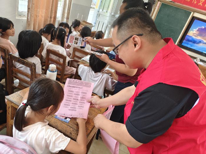 “叮铃铃——”上课铃响起,但今天的课堂格外特别。水汶镇派出所的民警叔叔变身“临时老师”,为孩子们带来了一场趣味十足的反诈知识课。“同学们,如果收到‘中大奖’的短信该怎么办?”话音刚落,小手如林般举起。“我知道!这是诈骗!”五年级的小明抢答成功,开心地接过奖品文具盒。