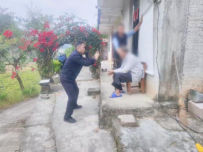 岑溪市公安局筋竹派出所为行动不便的老人提供上门办证服务。